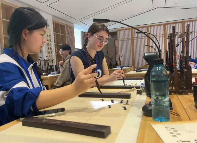 活动期间,中新学生一对一结对参与多项文化实践活动,感受多彩贵州、爽爽贵阳的独特魅力。在贵阳市第六中学,两市学生共同进行了剪纸、书法、象棋等活动体验,领略中国传统文化的魅力;参观了甲秀楼、贵州民族博物馆、贵阳市少年儿童图书馆等,近距离感受贵阳悠久的历史脉搏;畅游青云市集、携手登上贵阳路边音乐会舞台,尽享爱乐之城的无限“乐”趣;参观坝陵河大桥,共同感受世界“桥梁博物馆”的震撼;并打卡青岩古镇、天河潭等贵阳热门旅游景区,沉浸式感知“筑”城——人与自然和谐共生的生态画卷。